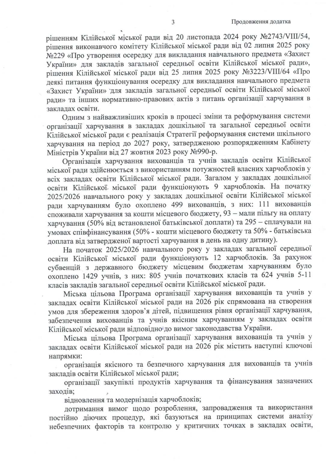 3. Встановити у закладах дошкільної освіти Кілійської міської ради безкоштовне харчування для дітей наступних пільгових категорій: