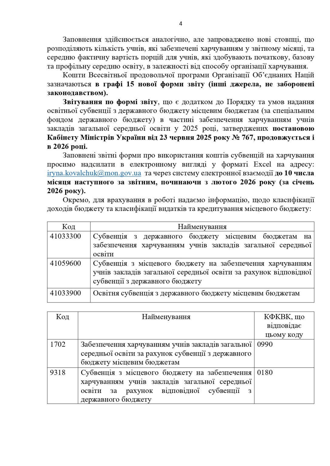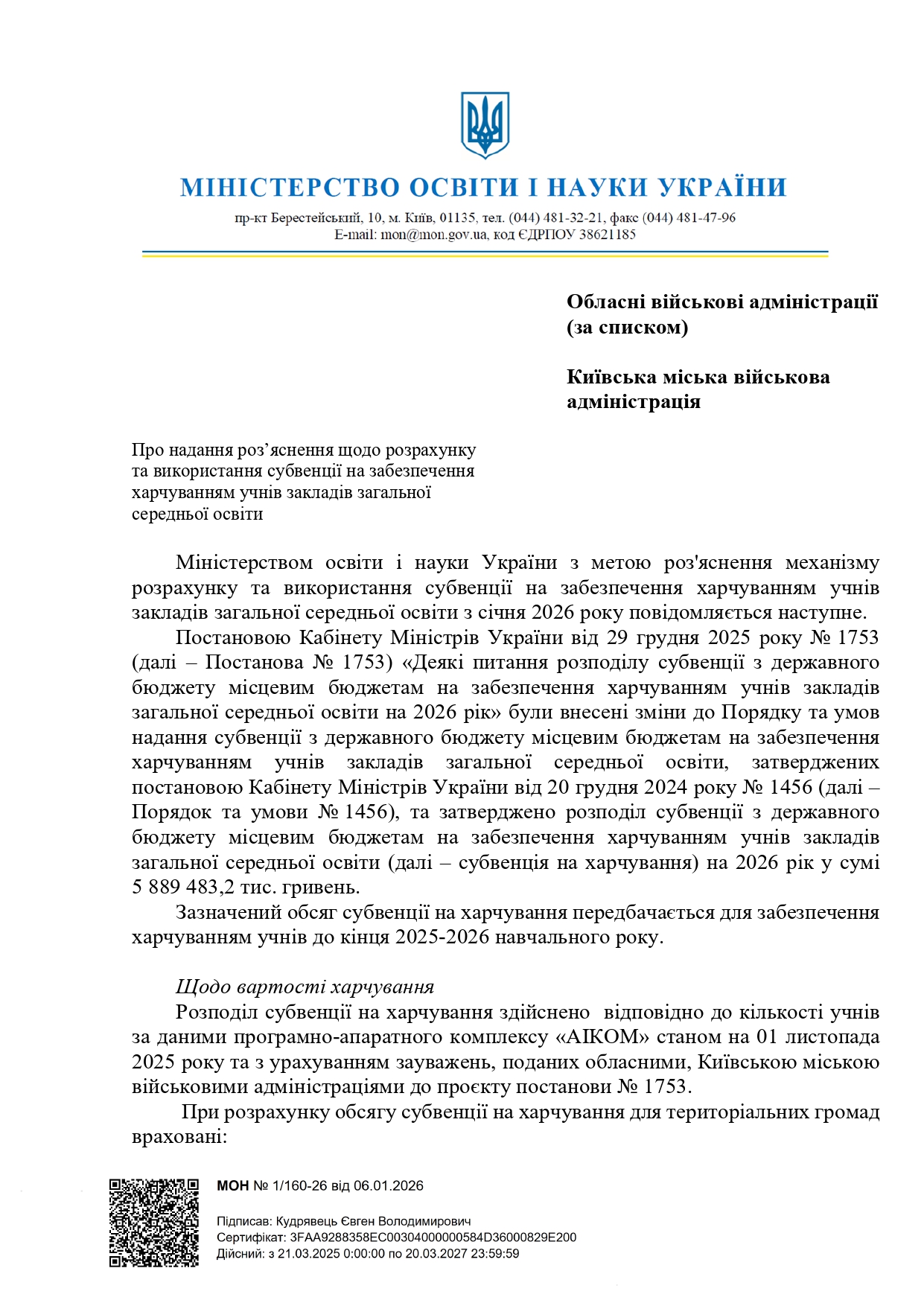 Про надання роз’яснення щодо розрахунку та використання субвенції на забезпечення харчуванням учнів закладів загальної середньої освіти