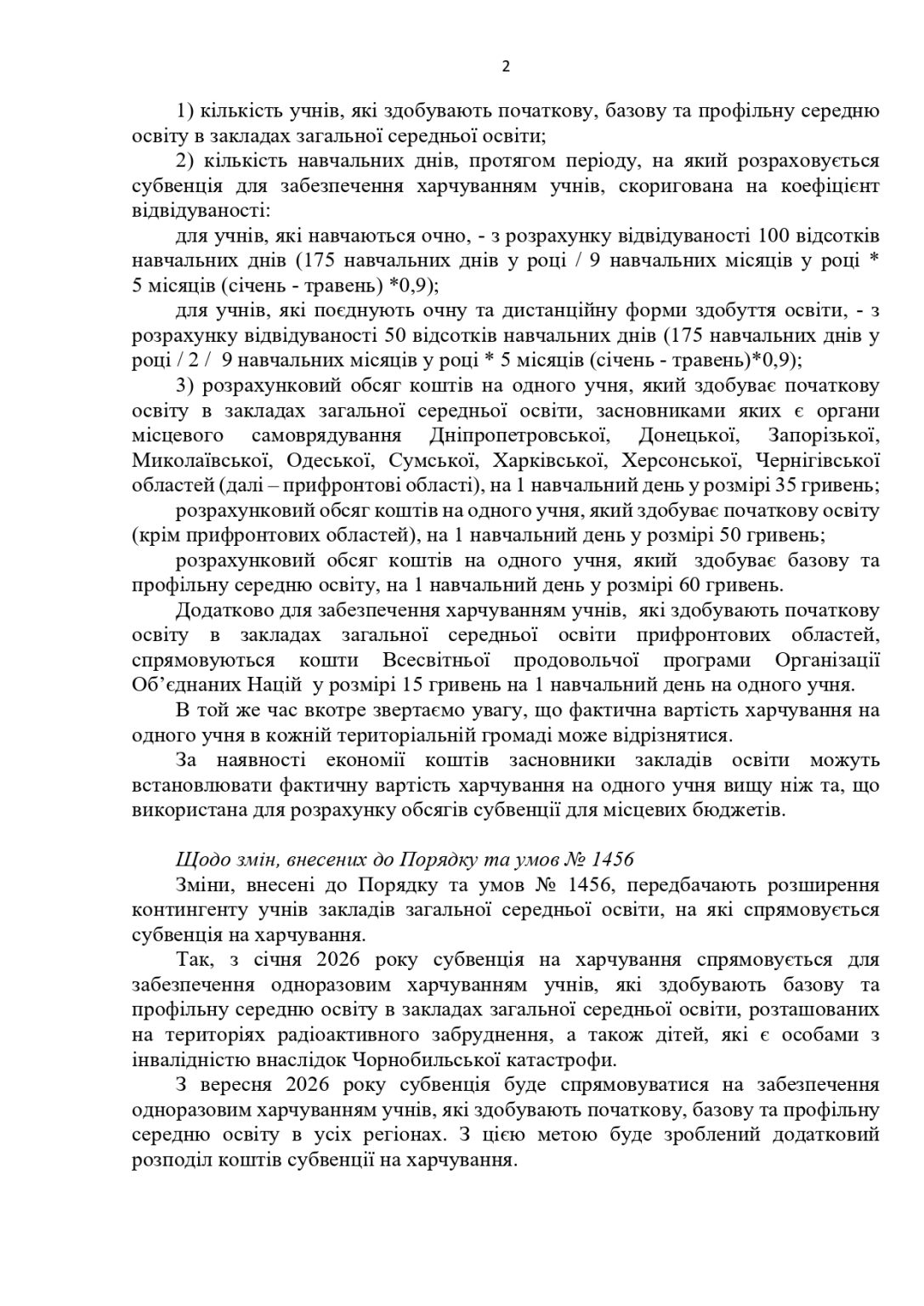 Про зміни у законодавстві щодо норм та порядку організації харчування у закладах освіти та дитячих закладах оздоровлення та відпочинку